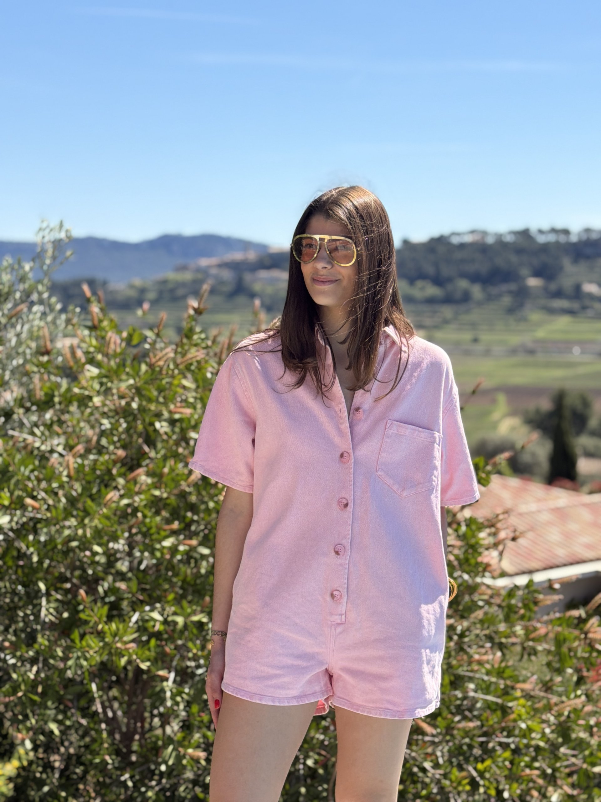 Combi short en toile délavé