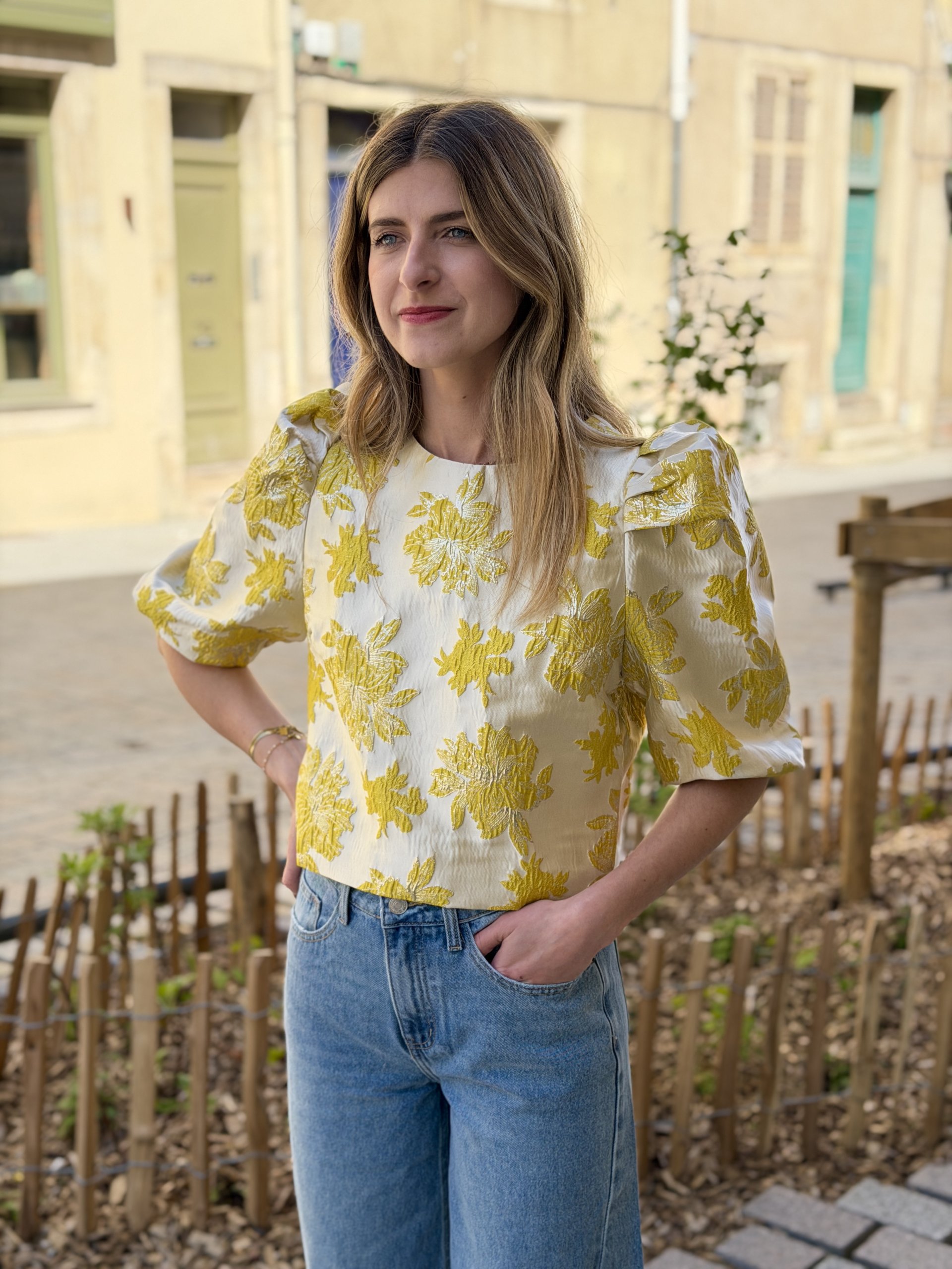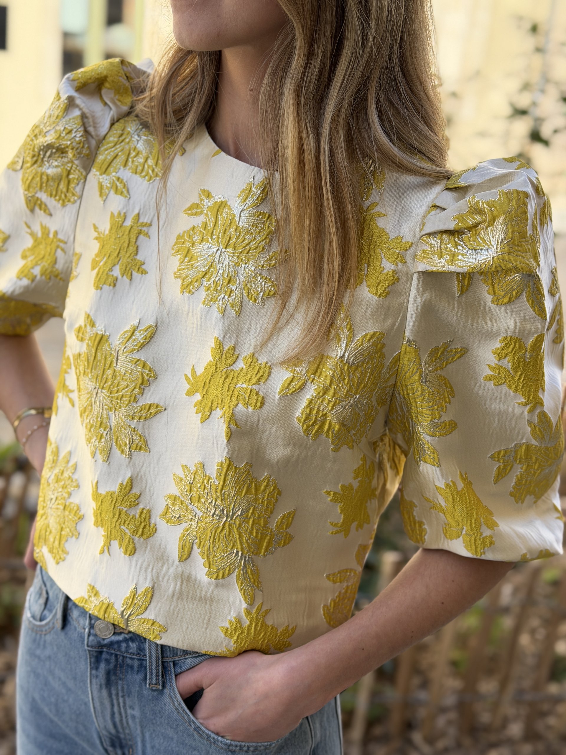 Top court lamé avec de magnifiques manches blousantes