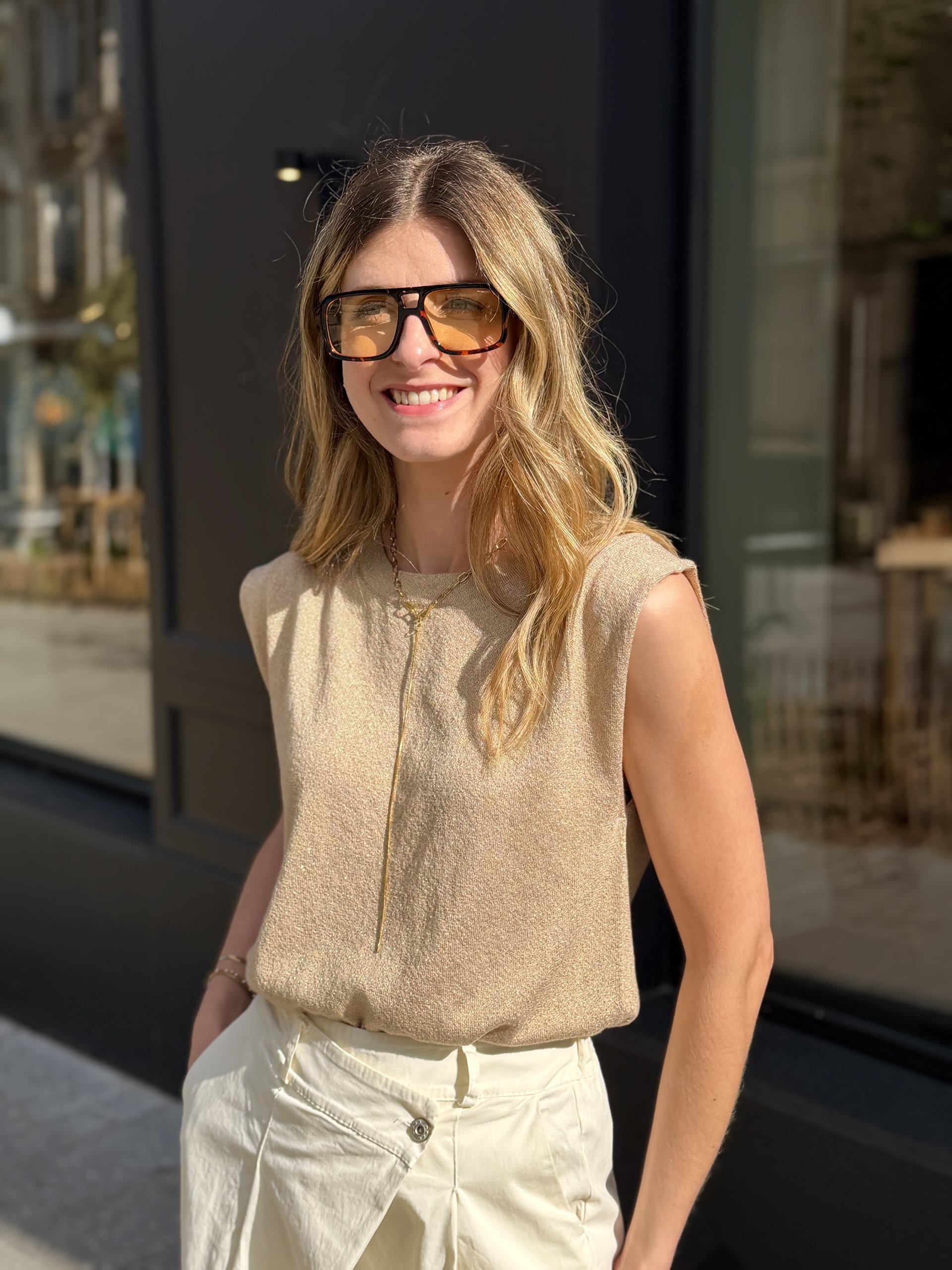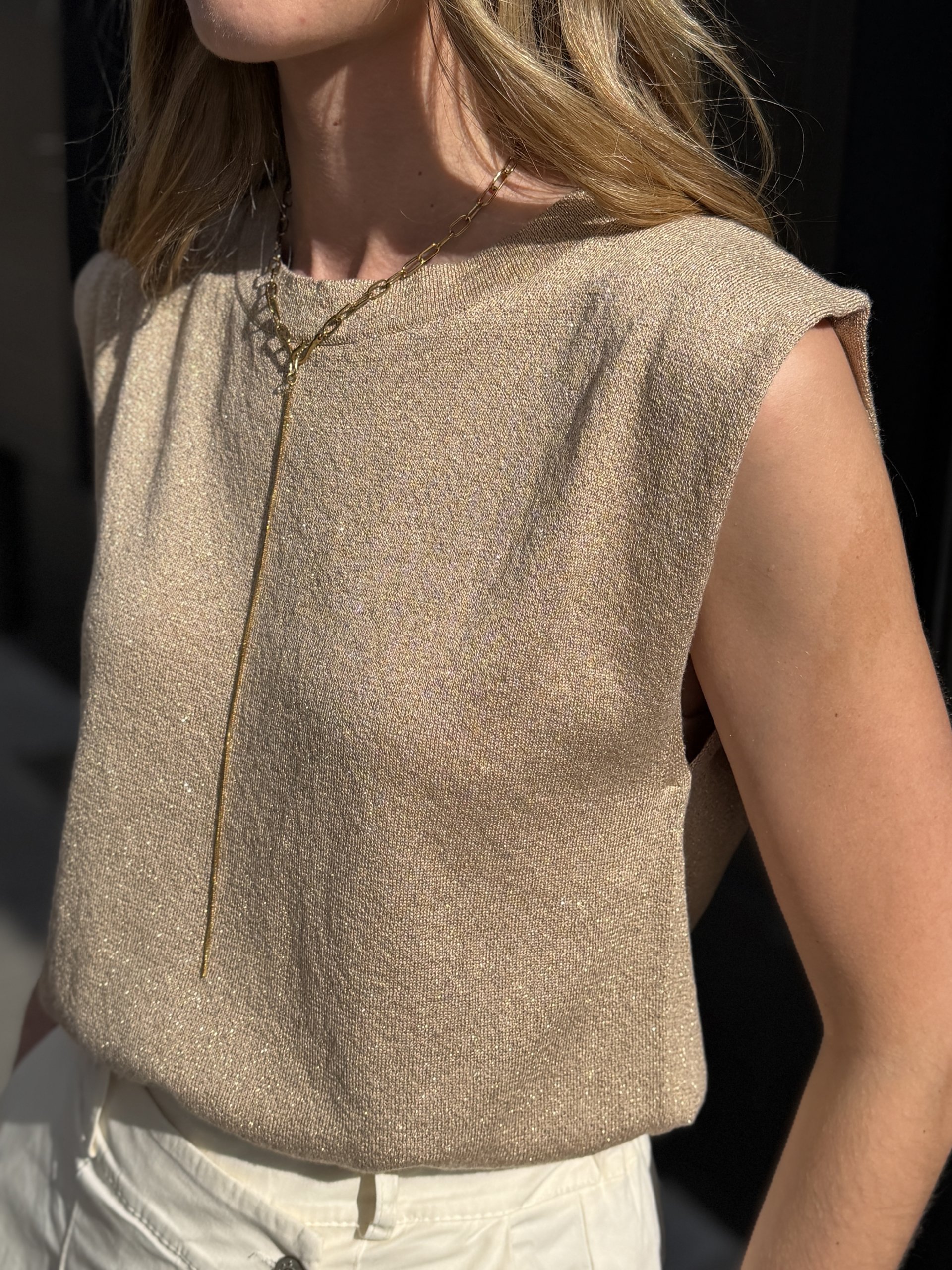 Top sans manche en lurex sable