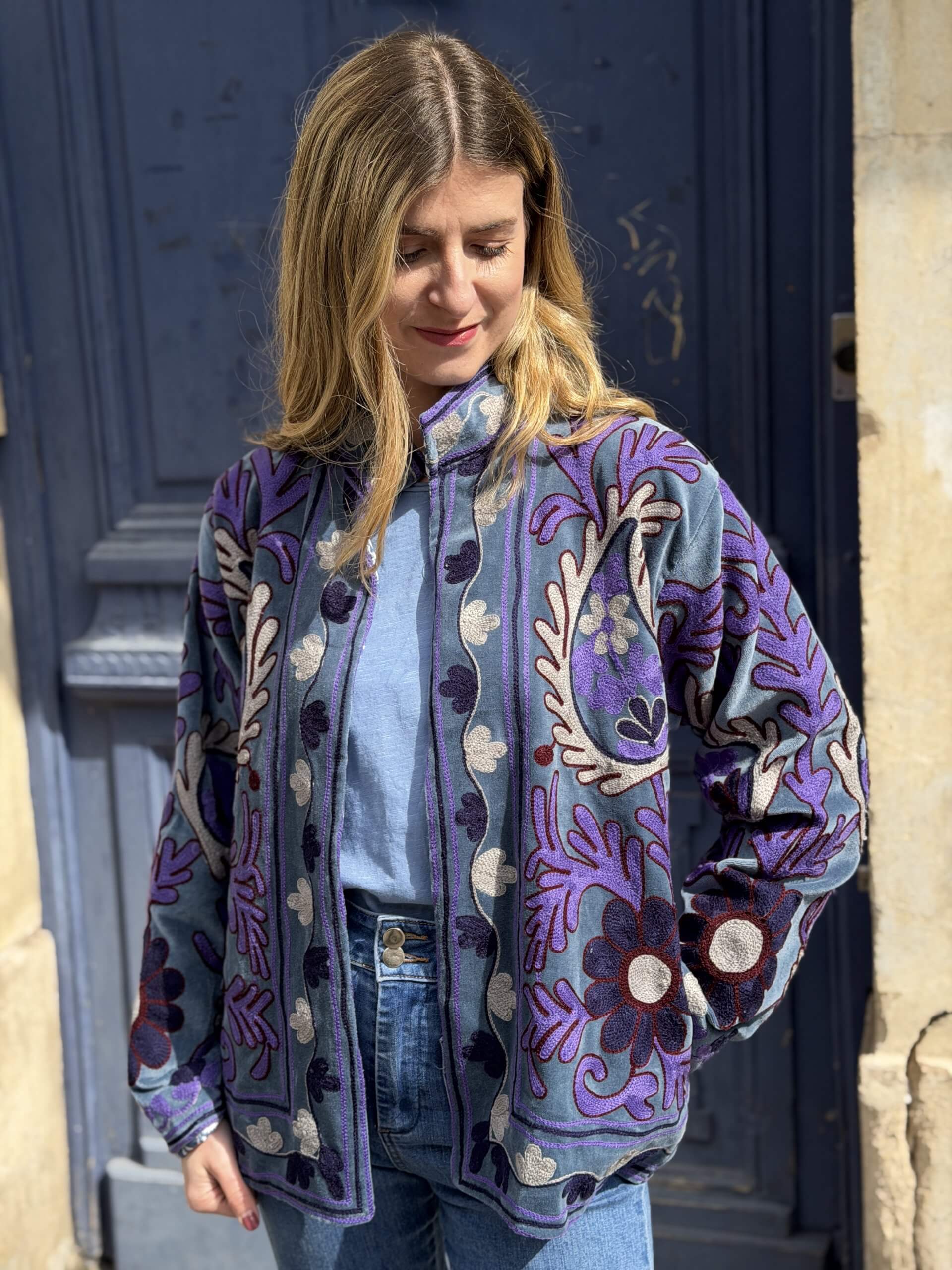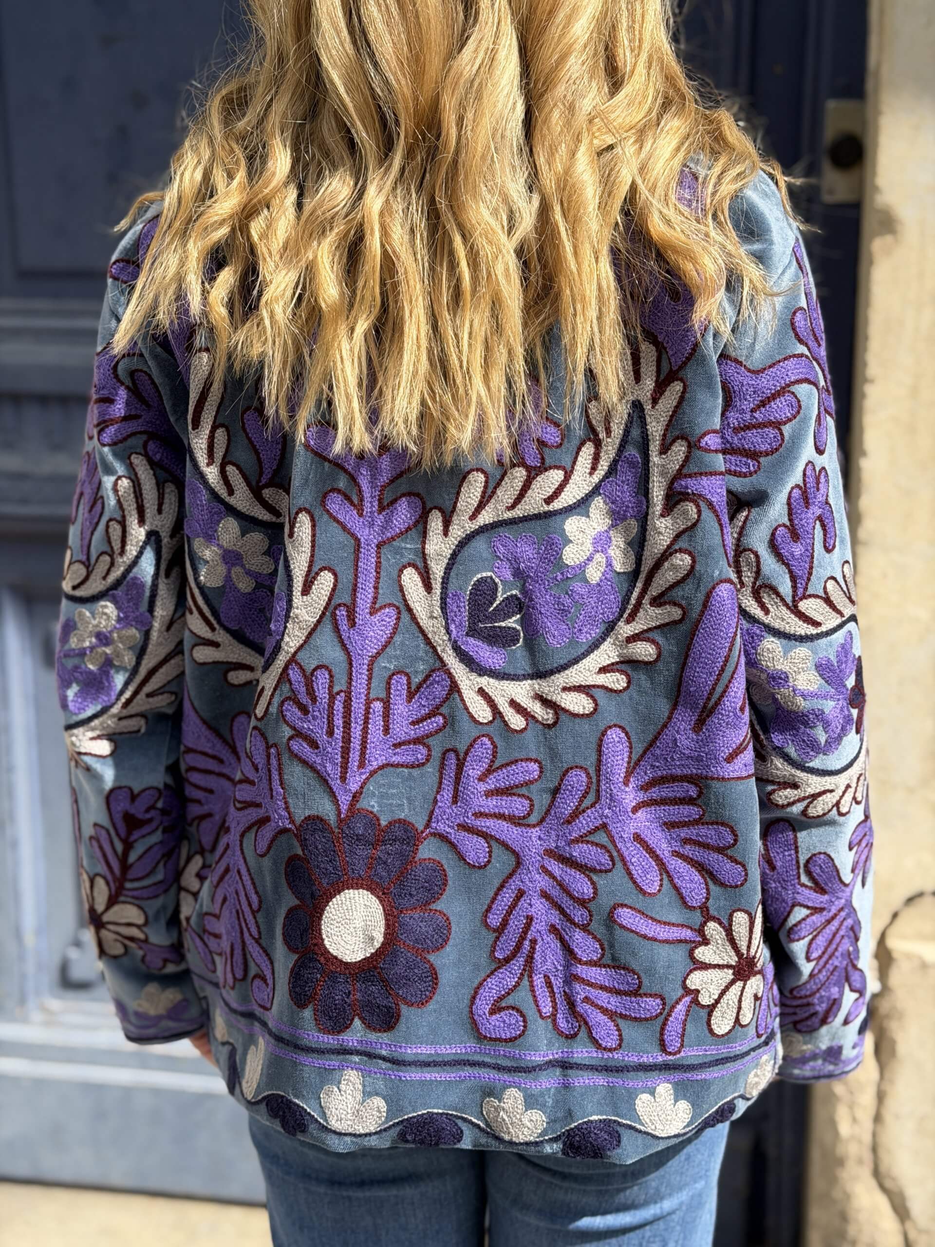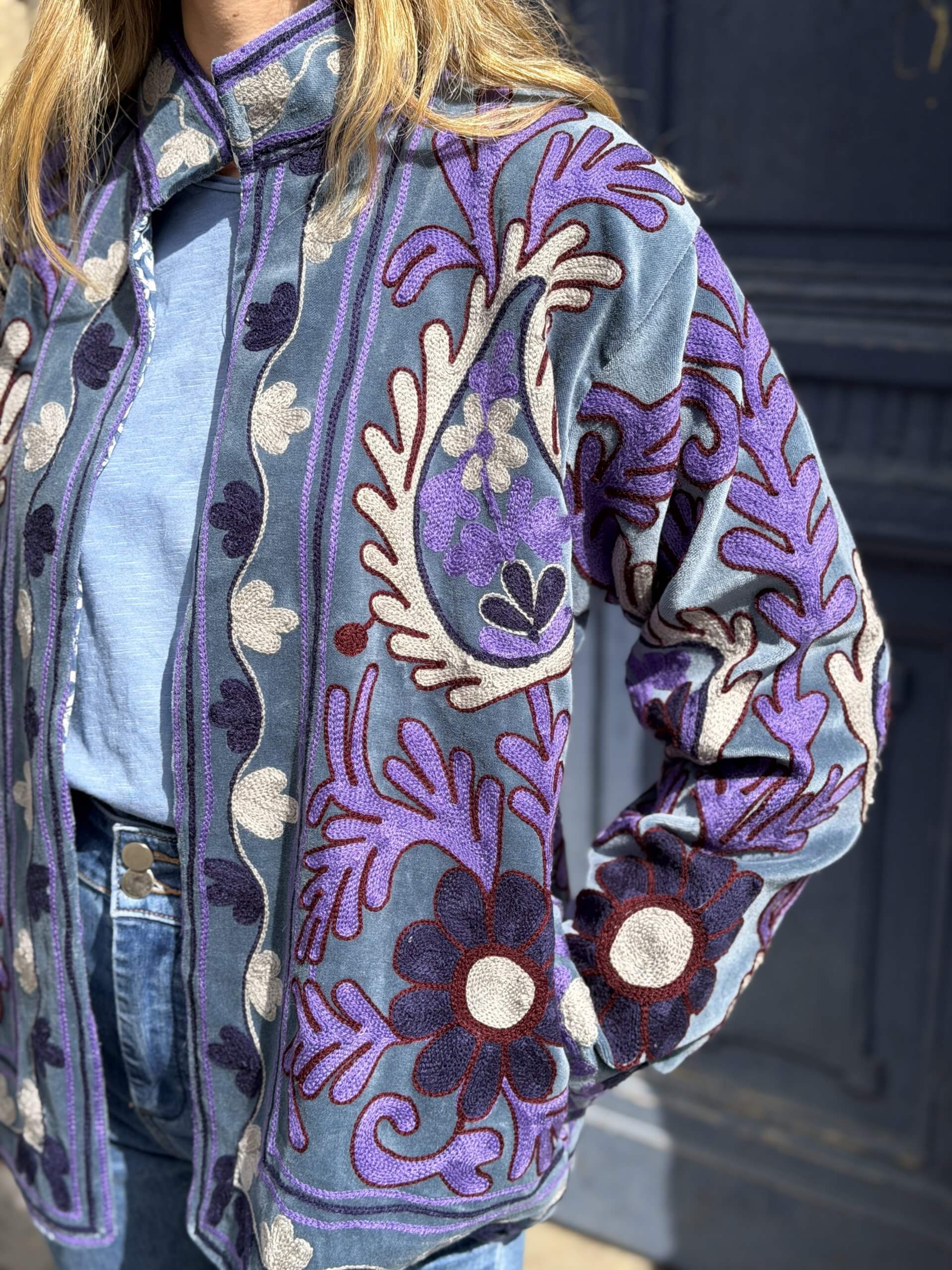 Veste Velours brodée / bleu et violet